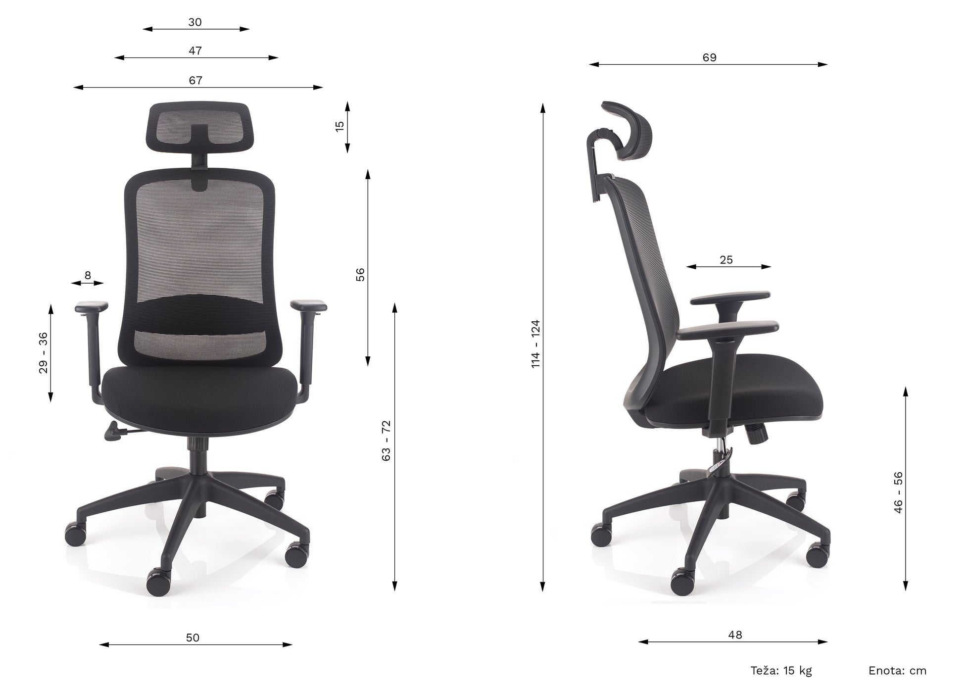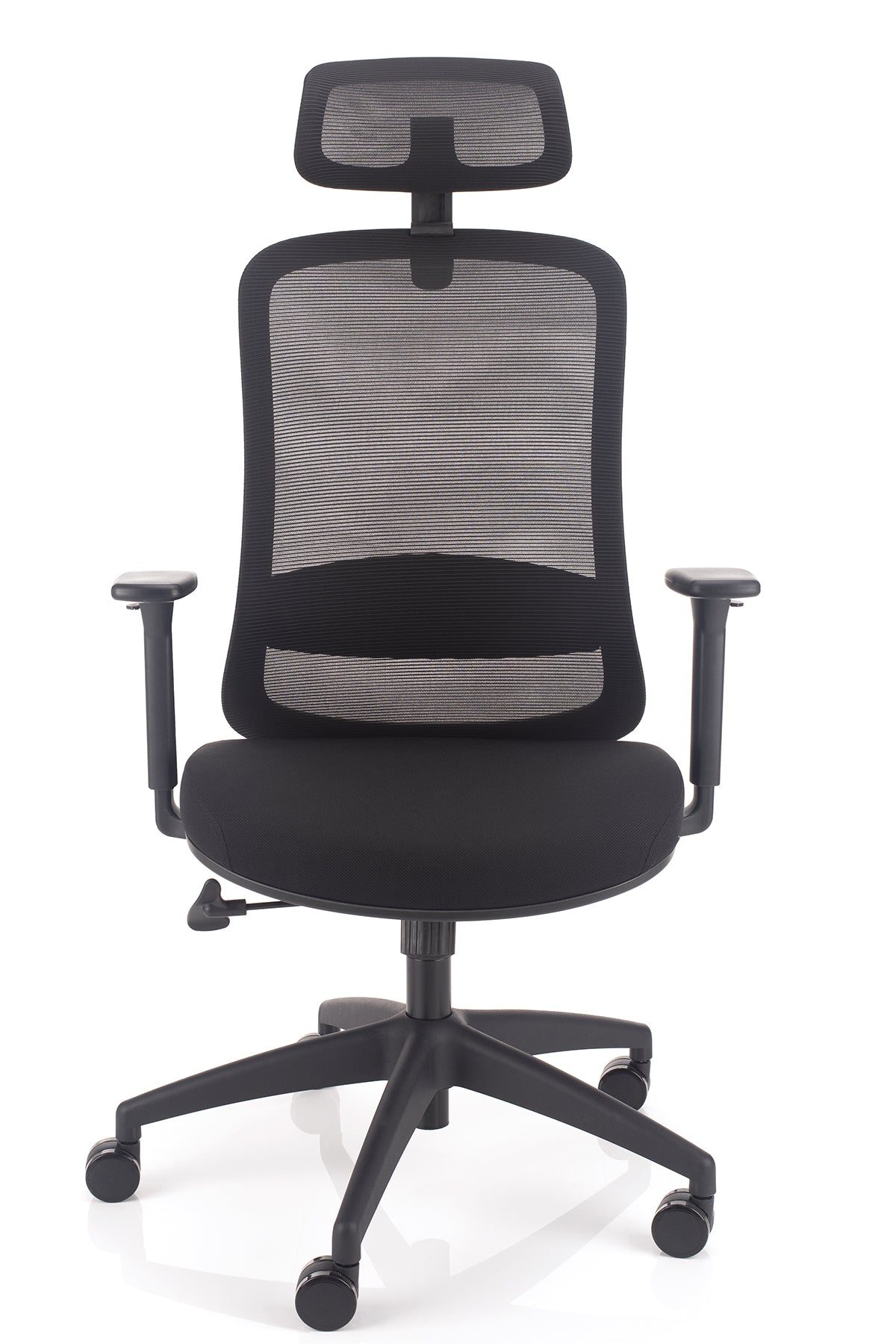 Stol Vibe je zasnovan za maksimalno udobje in podporo. Ima nosilnost do 110 kg in je primeren za osebe višine od 150 do 195 cm. Ergonomsko oblikovan sedež in naslon oblazinjen v kakovostno blago / mrežo zagotavljata udobno sedenje. Nastavljiva ledvena opora in 2D nastavljiv vzglavnik omogočata prilagoditev individualnim potrebam. Stol ima mehka dvižna ročna opirala in enostaven sinhron mehanizem za preprosto uporabo. Stabilno pvc podnožje in velika gumirana kolesa poskrbijo za gladko premikanje po mehki podlagi. Vibe je odlična izbira za vsakodnevno uporabo v pisarni ali doma.